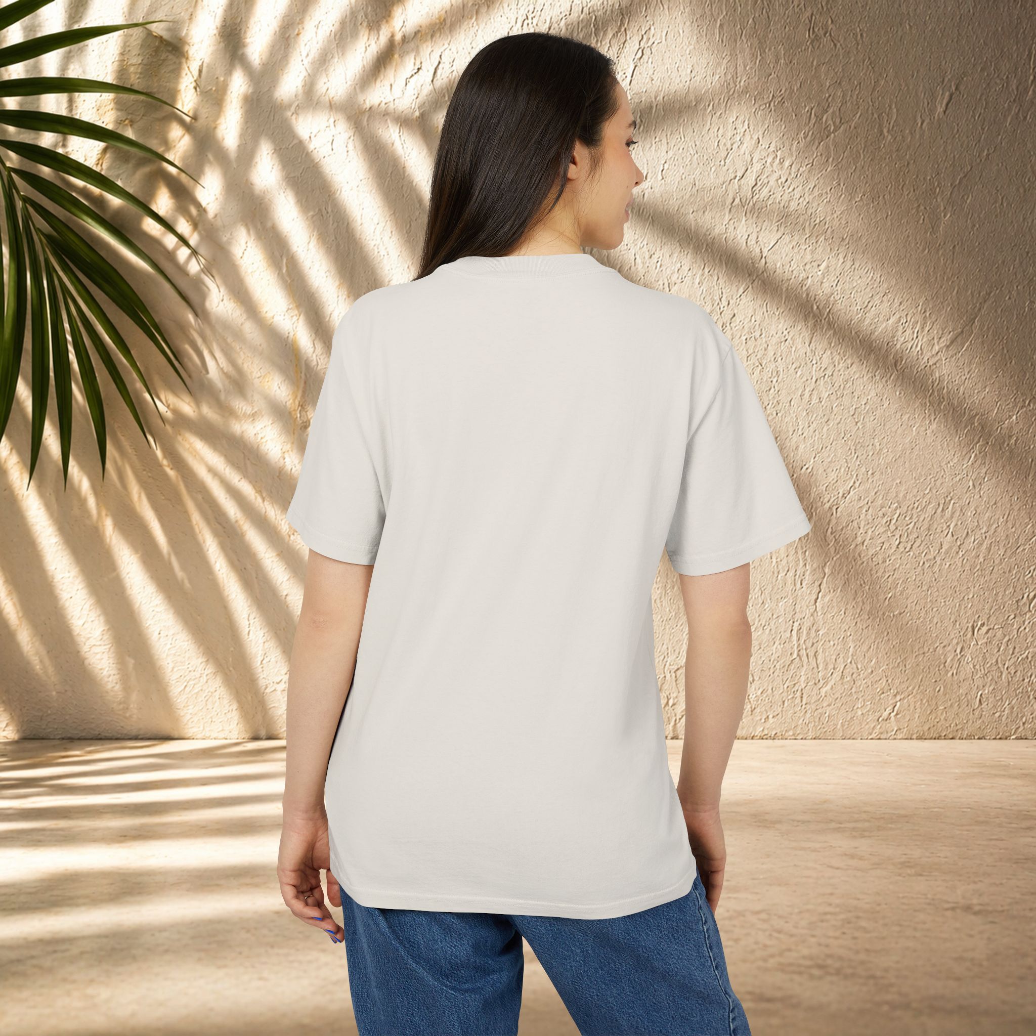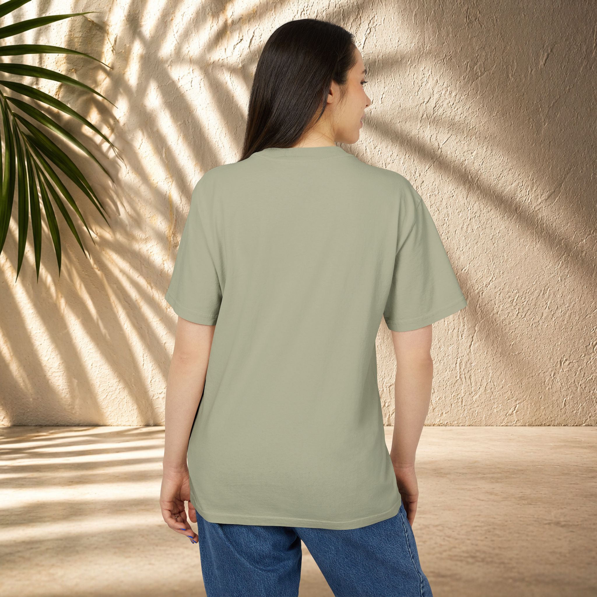 This heavyweight tee brings an easy, lived-in vibe to everyday wear. The boxy, oversized cut and dropped shoulders create a roomy silhouette that layers effortlessly over long-sleeve tees or stands alone as a grounded staple. The faded, post-dye finish gives subtle vintage character—softened edges and gentle hue variations that feel collected, not manufactured. Details like shoulder-to-shoulder twill tape, double-needle stitching, and a wide ribbed collar keep the tee durable and stable through repeat wears. Made from 100% carded cotton with a tear-away label and optional embroidery, it settles into your rotation and ages beautifully with time.