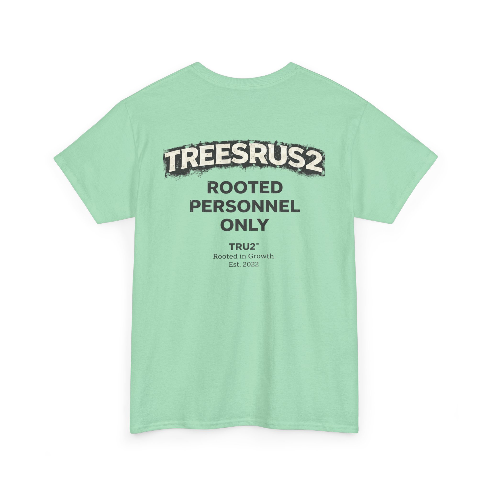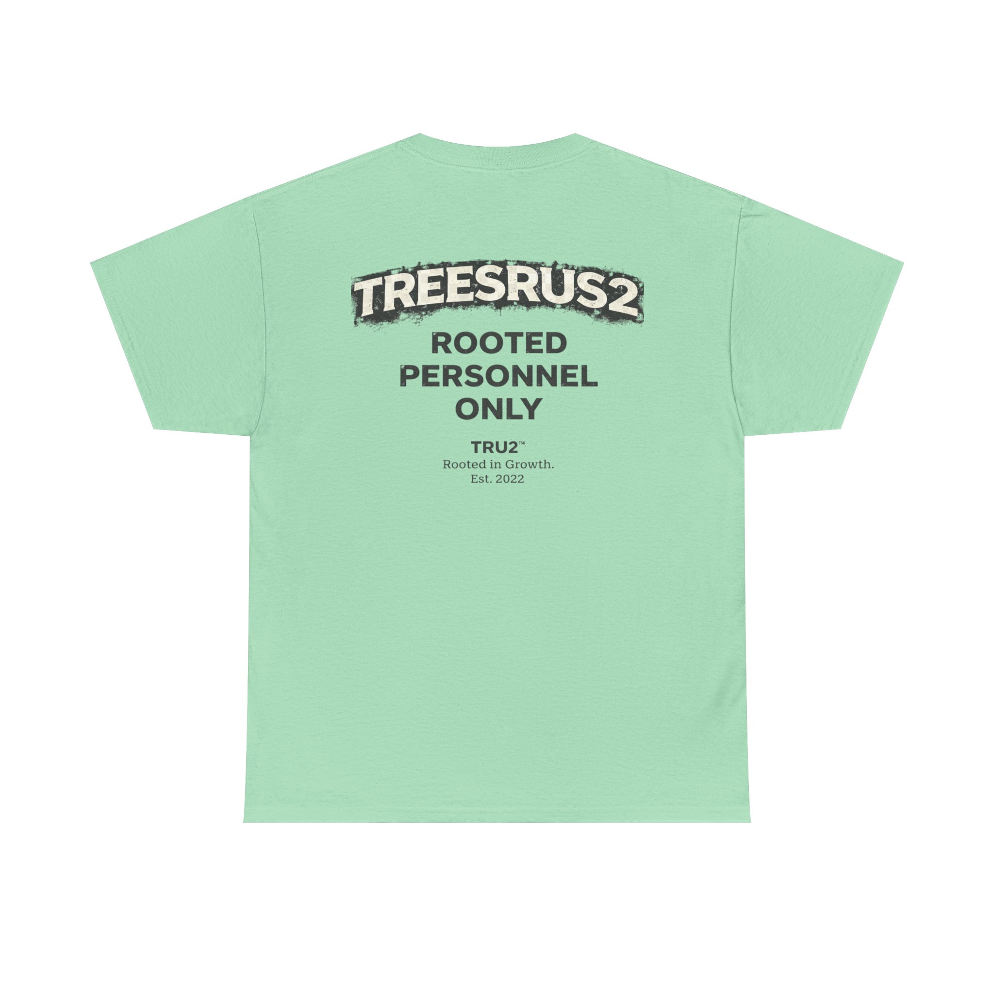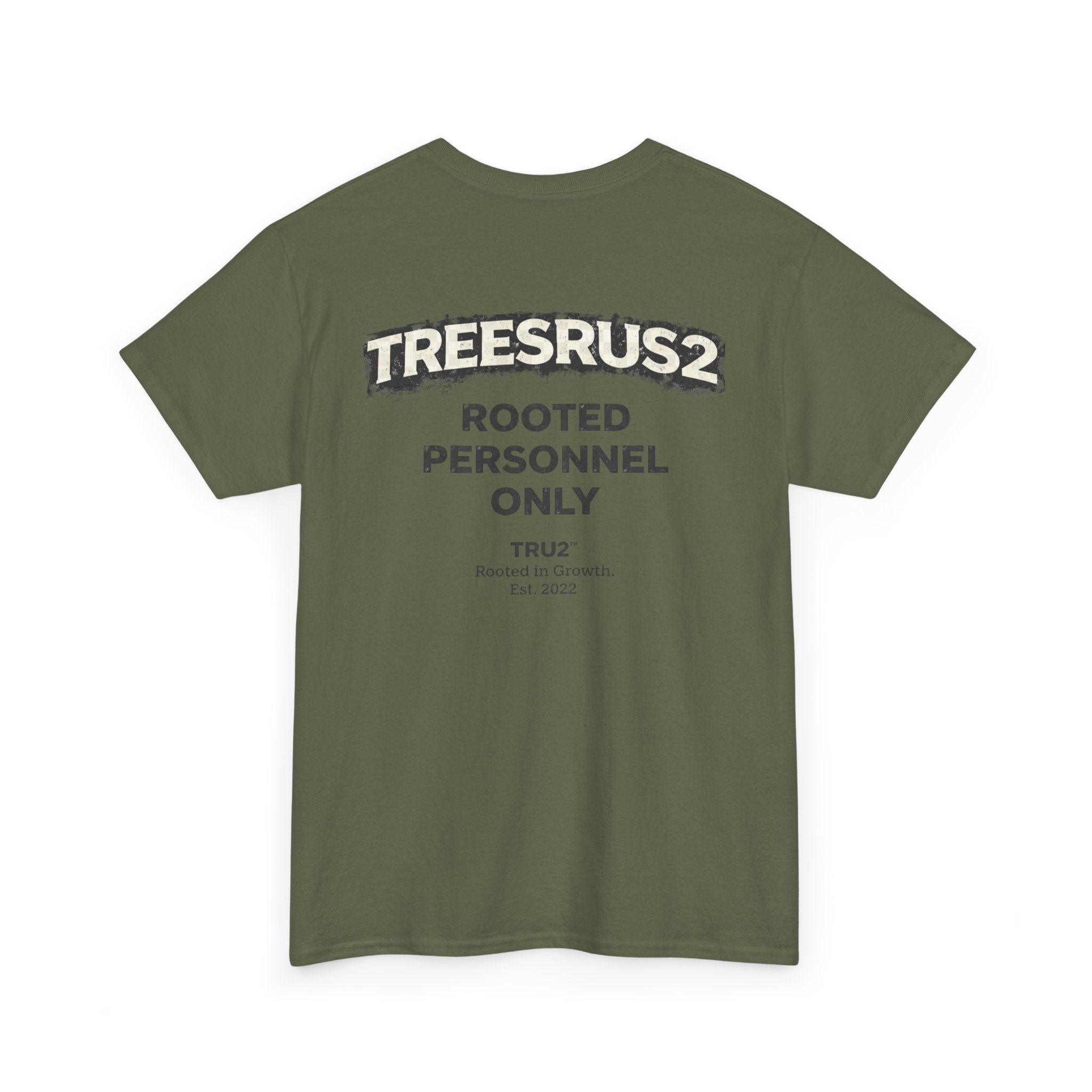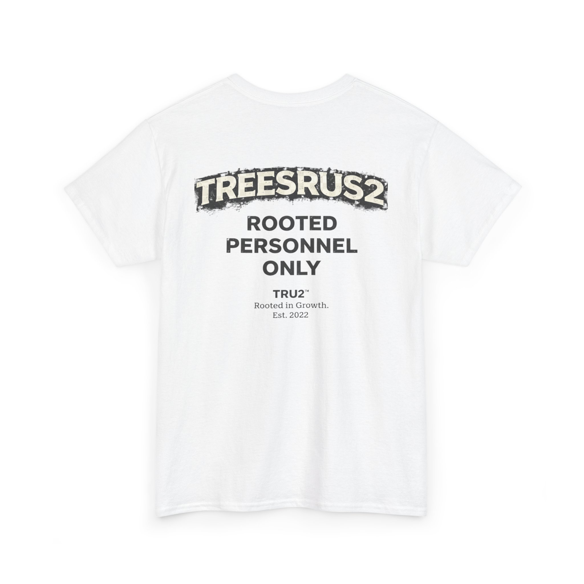 TreesRUs2 Rooted Personnel Only Tee. Clean front, bold back graphic, and durable cotton build. Made for those who stay grounded.